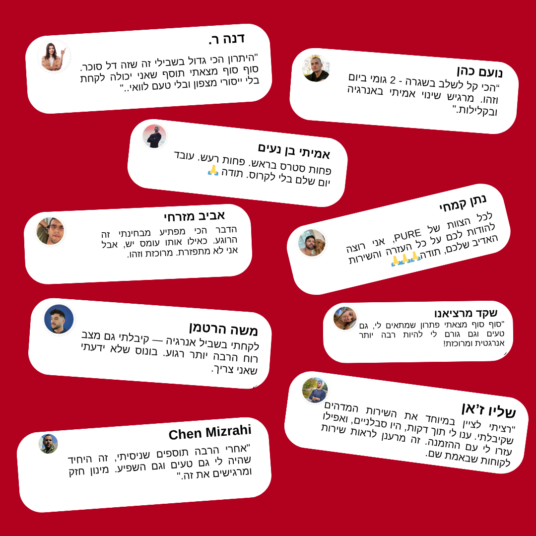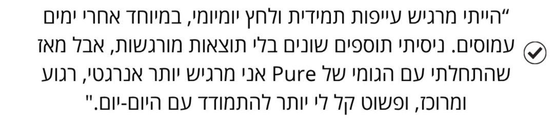 *הנתונים מבוססים על סקר שבוצע בקרב 790 לקוחות לאחר 10 ימי שימוש במוצר PURE