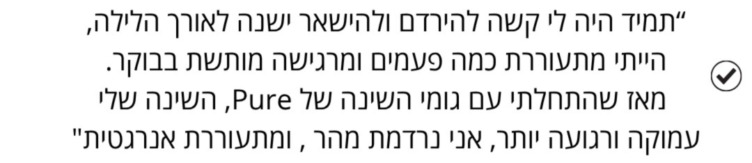 *הנתונים מבוססים על סקר שבוצע בקרב 820 לקוחות לאחר 10 ימי שימוש במוצר PURE